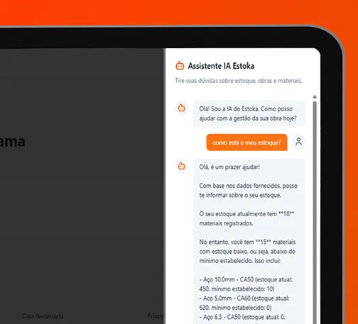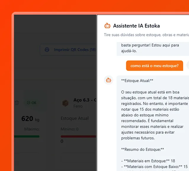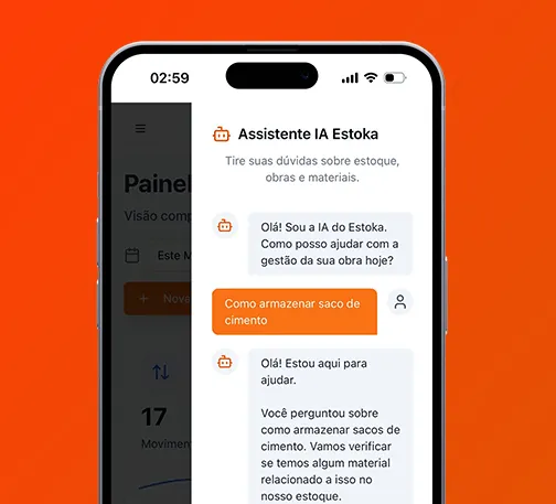 A IA do Estoka é especialista em estoque de obra. Se tiver uma dúvida, peça ajuda.