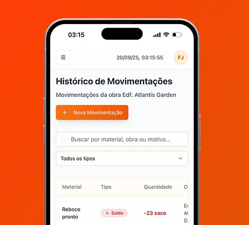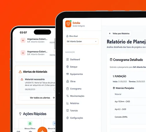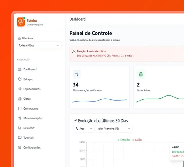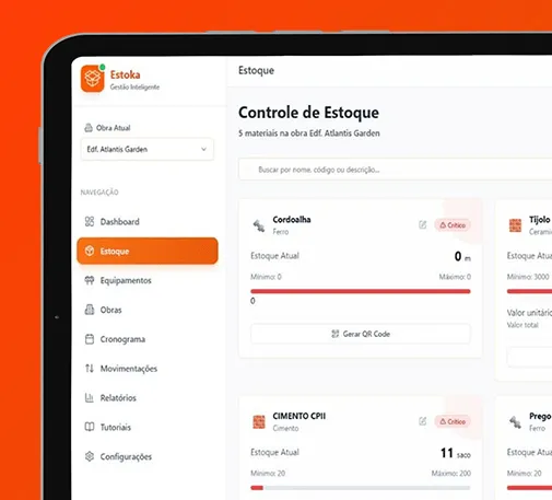 “Antes do ESTOKA, eu controlava tudo em papel… Agora tenho o controle do estoque de cada obra no meu celular, em tempo real. Evitei duas compras duplicadas só no primeiro mês. O sistema se pagou rapidinho.”